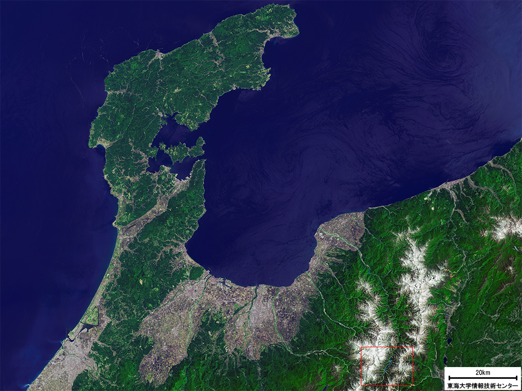 ●赤い枠の領域の拡大画像表示 画像処理:東海大学情報技術センター 画像データ:Landsat-8/OLI 観測日時:2016年5月18日 その他の高精細画像については、お問い合わせ下さい。 Copyright(C)2020 by Tokai University Research & Information Center 本ホームページの画像・記事の許可なき複写、転載を禁止します。
