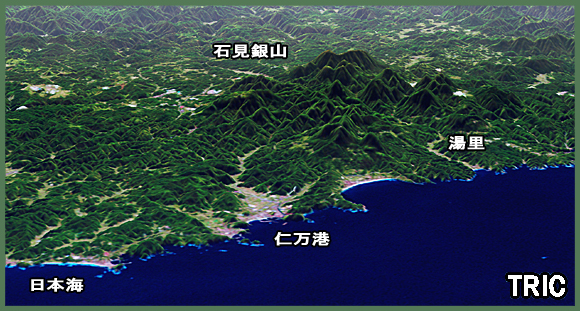 石見銀山(島根県太田市)周辺の3D景観画像を作成しました。石見銀山は、2007(平成19)年、ユネスコ世界文化遺産に登録されました。