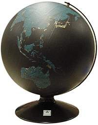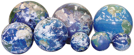 東海大学情報技術センターでは、人工衛星データの画像処理による衛星地球儀の開発に取り組んでいます。 今回写真で紹介しているものはその一部ですが、サッカーボールやバレーボール型の地球儀、一億分の一サイズの地球儀、夜間の衛星データを利用した地球儀など、衛星データの応用として、いろいろなタイプの衛星地球儀がこれまでに試作・開発されました。