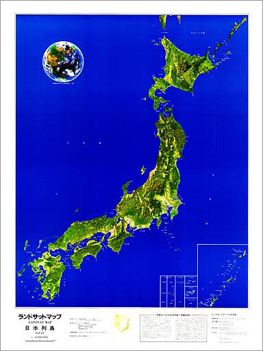 地球観測衛星ランドサットは地上約915km(1、2、3号。4、5号は約705km)の上空から地球を観測しています。日本列島の観測は、午前9時半前後に行なわれ(太陽同期軌道)、衛星が地球を一周する時間は約103分、18日で世界中を観測します。このようにして地球を観測したデータは、地上の受信局(日本の場合は、埼玉県の鳩山町)で受け、コンピュータ処理して、画像化されます。ランドサット画像は1シーンで185kmx185kmの地域をカバーしています。したがってランドサット画像で日本列島全体を見るためには60シーン以上のデータが必要となります。ランドサットマップ日本列島はランドサットMSS画像72シーンをコンピュータでモザイクして作成した衛星地図です。