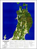 このランドサットマップで緑色系で見えるのは、植生に覆われた地域です。東北地方や中部地方の山岳地帯の森林は、緑色、青緑色、黄緑色に映っています。これは、樹種の違いや、状態の違い(落葉樹の季節変化等)によるものです。農草地は、森林よりも明るい緑系の色に映ります。但し、農地(水田、畑)は、季節によりその状態が大きく変化し、衛星地図の色にも影響します。新潟平野は、田植時期の水田でピンク色に映っています。関東平野などの稲刈後の水田は、裸地と同しように白っぽく映っています。平地に広がる都市・市街地は、赤色、赤紫色に見えます。都市化の状態や季節などによっても若干色が違って見えます。奥羽山脈や中部アルプス連峰に白く見えるのは雪です。また、北海道の中央附近の山岳地帯、天塩山地西側、そして神戸北部などで白く見えるのは雲です。