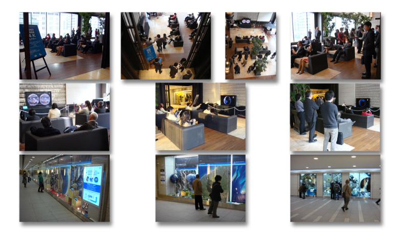会場では、高解像衛星画像を用いた東京駅周辺のスクロール映像をはじめ、夜の地球の姿、MTSAT画像を用いた一年間の地球の雲と水蒸気変化などを約15分の作品として繰り返し放映した。