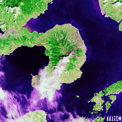 噴煙を上げる雲仙普賢岳(MOS-1 MESSR Sep. 8, 1991)