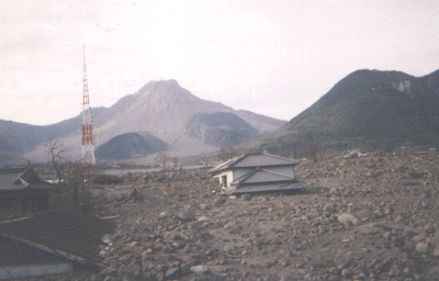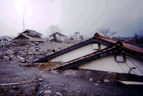 約200年の沈黙の後、雲仙普賢岳が1990年11月11日に噴火しました。1991年6月は大規模な火砕流が発生し、43名の尊い命が失われました。1994年に沈静化するまでに火砕流等により約800世帯が被害を受けました。