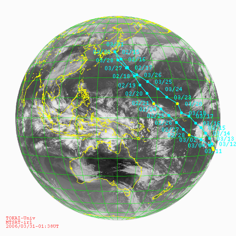 *画像の一部が欠けているのは気象庁の衛星運用計画の制約のためです。