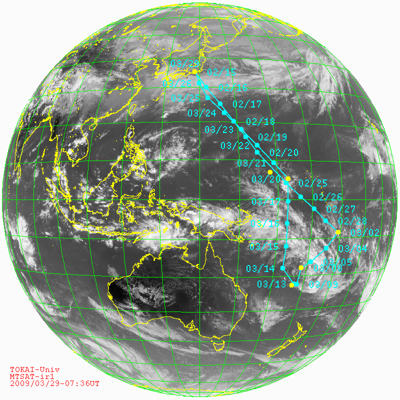 空色線が望星丸の航跡 黄色い丸印は寄港地