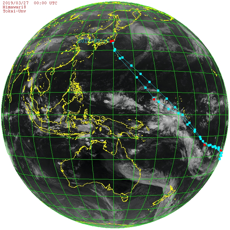 空色線が望星丸の全航跡 赤い丸印は寄港地